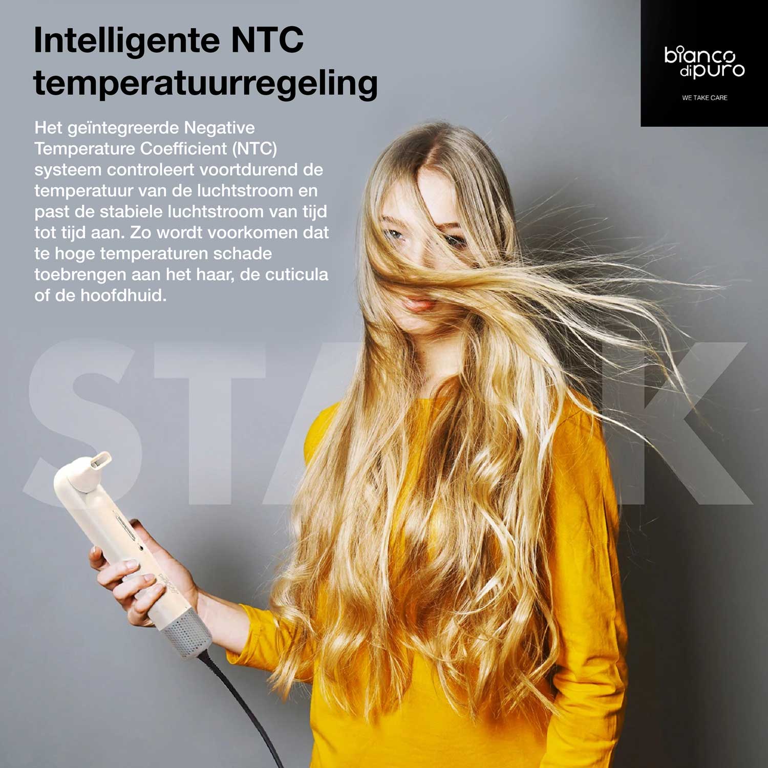 * Het intelligente Negative Temperature Coefficient (NTC)-systeem controleert continu de temperatuur van de constante luchtstroom en past deze indien nodig automatisch aan.